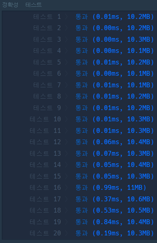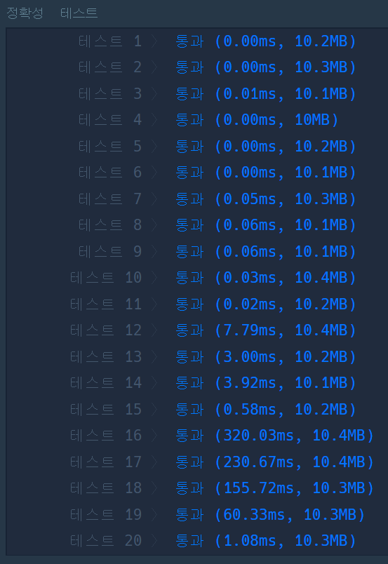 테스트 16, 17, 18에서는 시간이 오래 걸림